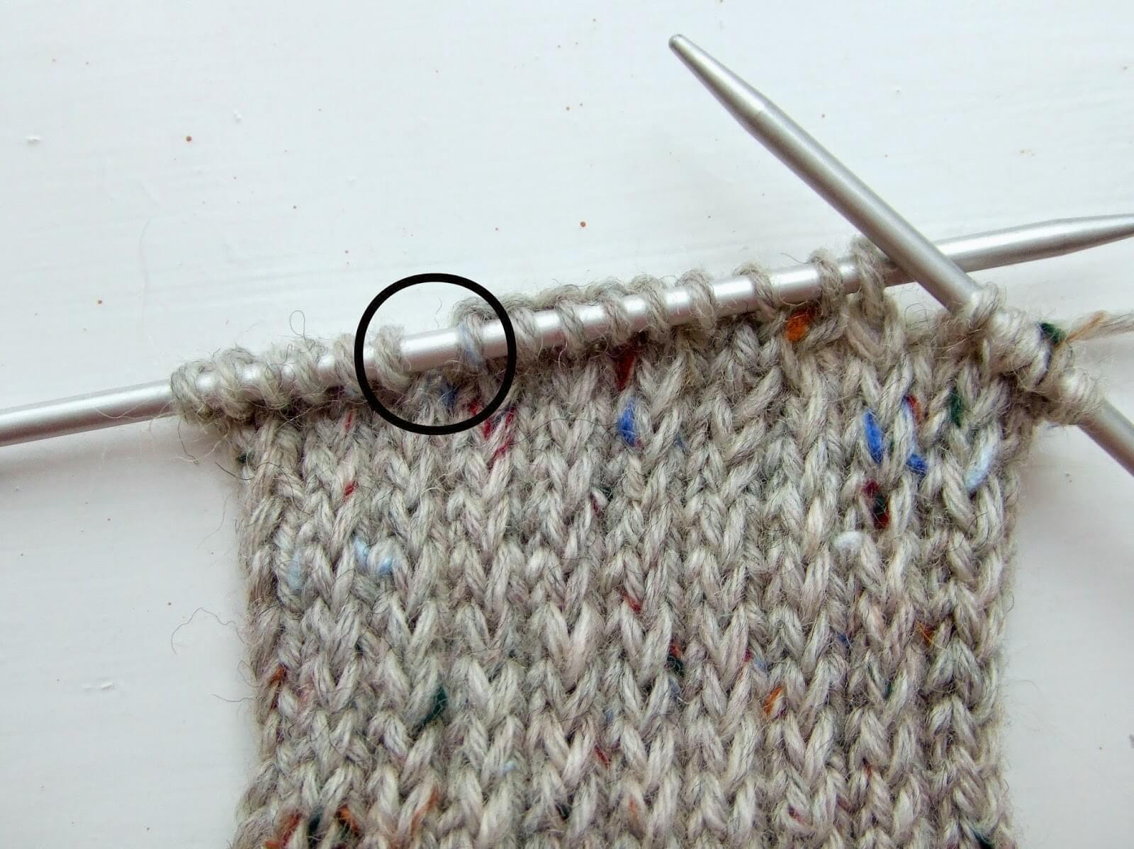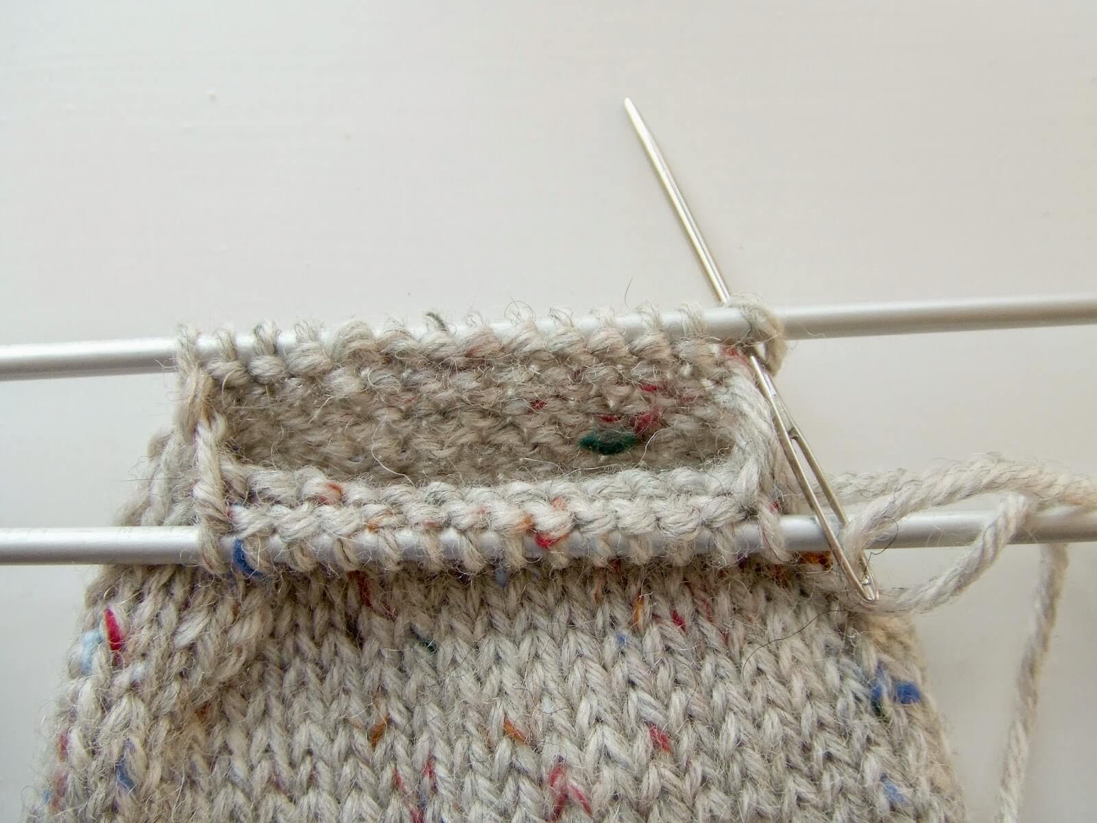 2 Insert the wool needle knit-wise into the first stitch on the front DPN and slip it off. (No, you haven’t gone mad, I realised that I hadn’t taken photos of this particular step so these are pictures from my basic sock tutorial!)