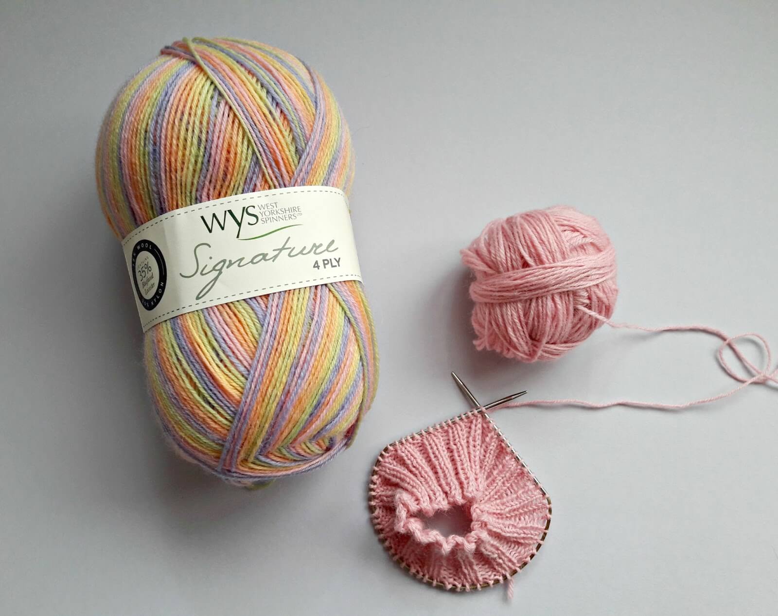For these socks, I used a ball of West Yorkshire Spinners Signature 4ply in Sherbet Fizz with the leftover pink yarn from the catnip socks (WYS Signature 4ply in Candyfloss). Just to give you some idea of how far a ball of yarn might go, I knitted one full pair of socks in Candyfloss (UK size 5) and used the rest for the cuffs, heels and toes on two more pairs of socks (including this one) and I still have a small ball of it left over. Not enough for more adult socks but certainly enough to add a stripe in on another pair, or complete a small blanket square. It makes you realise that although a ball of sock yarn might initially seem expensive compared to a pair of shop-bought socks, it stretches far enough to become much better value.