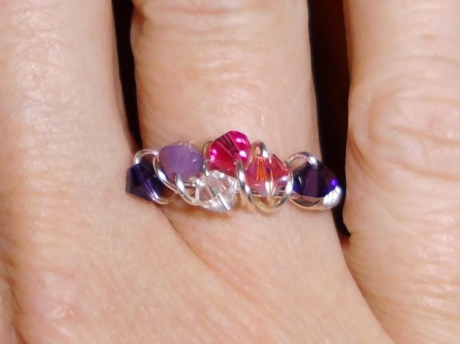 This is big daughter showing how easy it is to create a spiral wire ring – she was much better at it than I was!