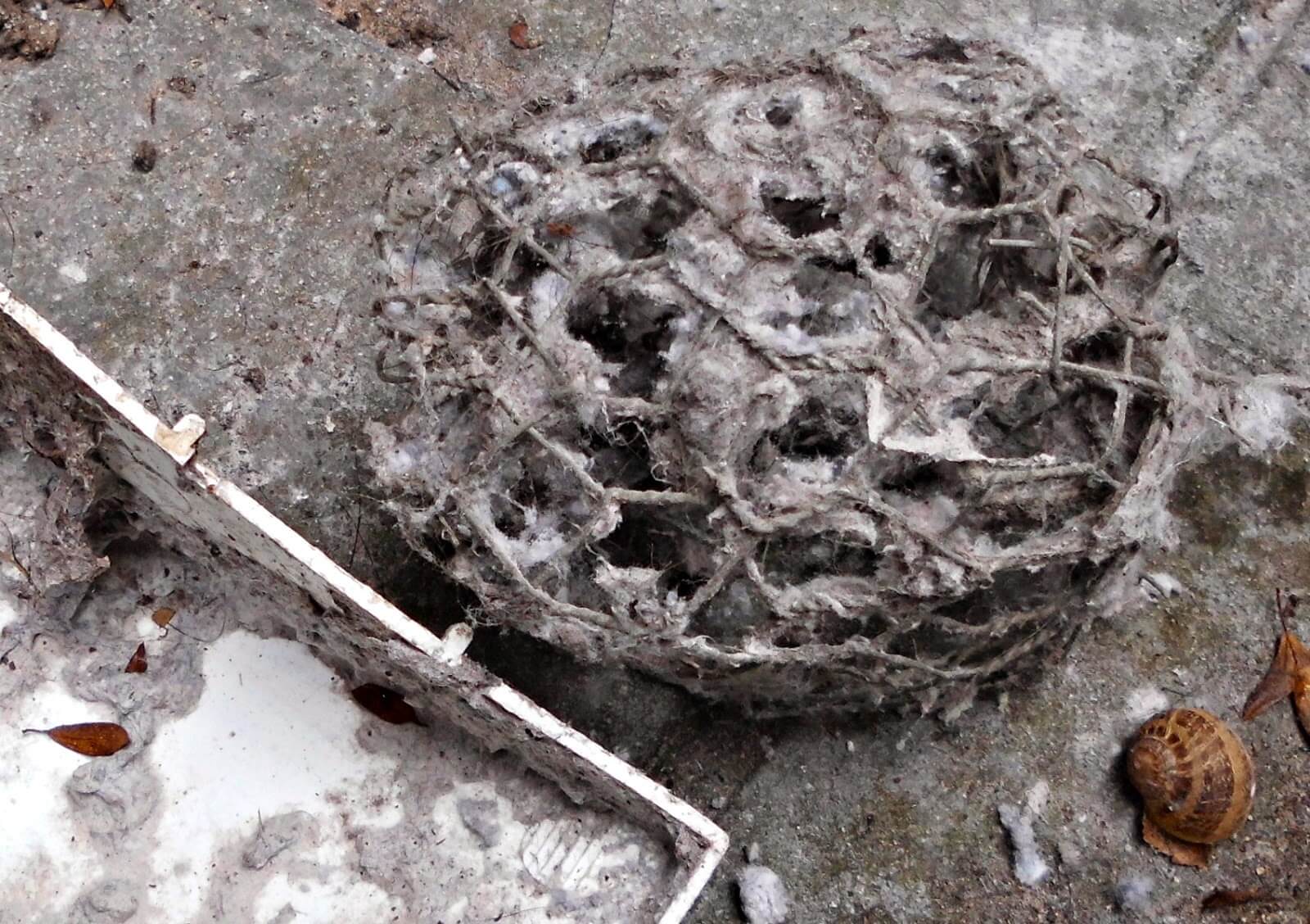 and a snail this year. It looks like a fluffy birds nest and that’s not good – all of that fluff is blocking the vent and I need to get it out so that the hot air can flow properly out from the dryer. It’s a bit of a slow job to pick it all out as the fluff has crusted and welded itself to the wire. It’s worth it though – look how much came off it!