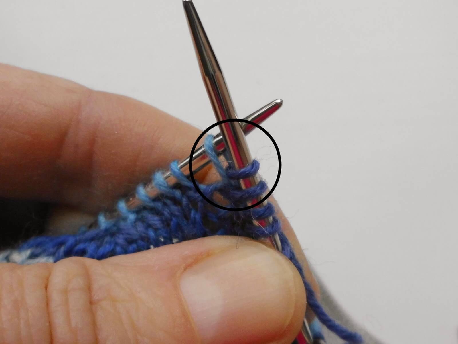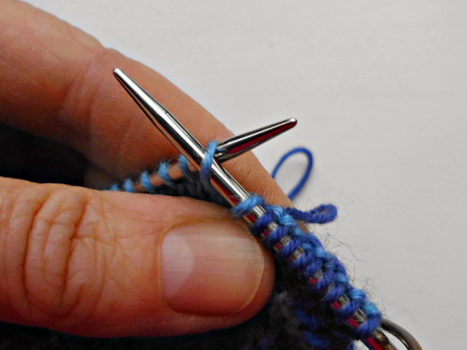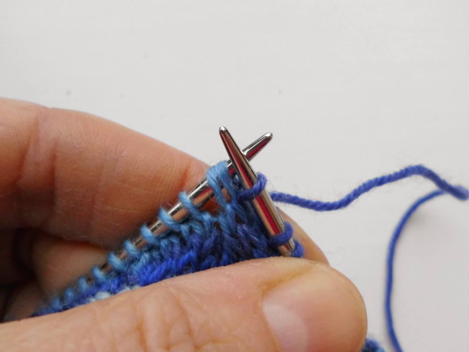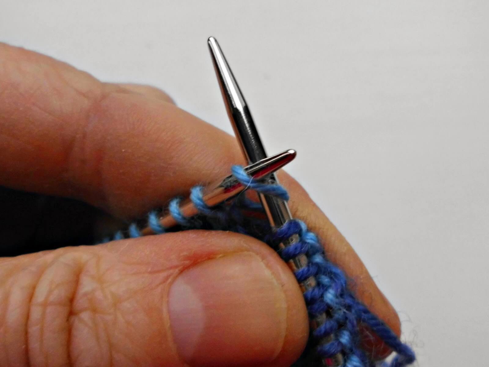 1 Knit into the first stitch on the left hand needle, but don’t take the stitch off the needle.