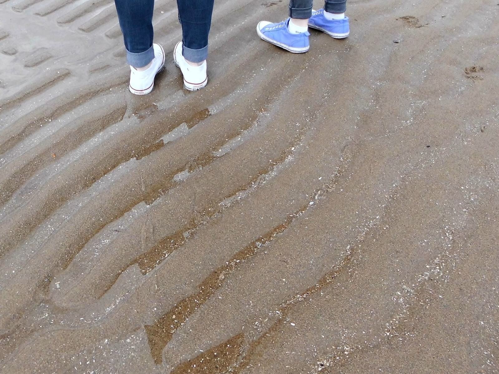 He wasn’t the only one who was enjoying himself on the sand. The girls were having fun too, walking on the ridges the sea had left and collecting shells.