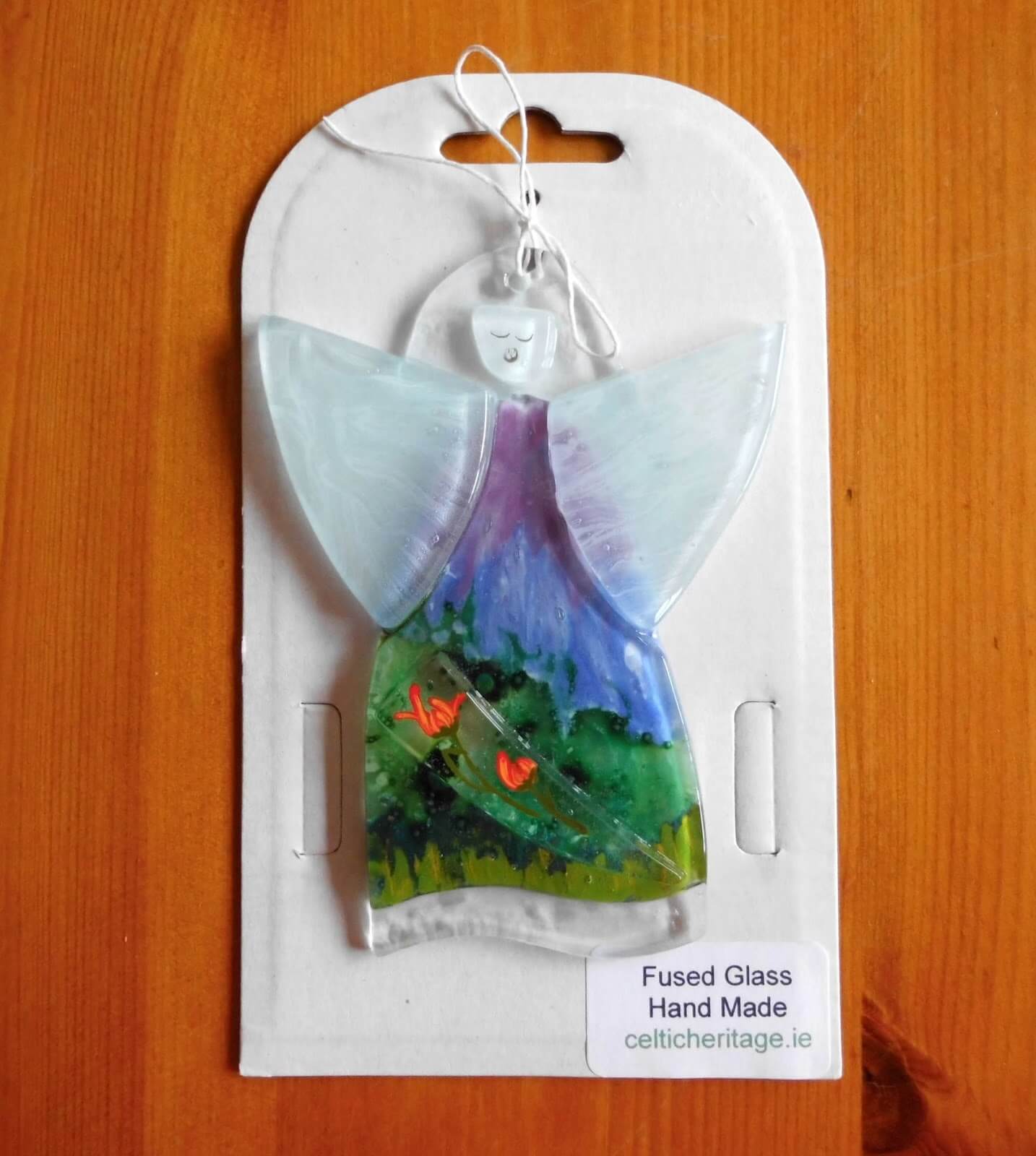 It’s not always easy to find somewhere dog-friendly to eat, especially if it’s raining, but the cafe had a sheltered outdoor table and we were quite happy to sit and enjoy our lunch in the fresh air. Just around the corner and down the road is a lovely Welsh craft and gift shop – I couldn’t resist this fused glass angel, and even though I later discovered that she comes from Ireland and not Wales, she still reminds me of the hills where were stayed.
