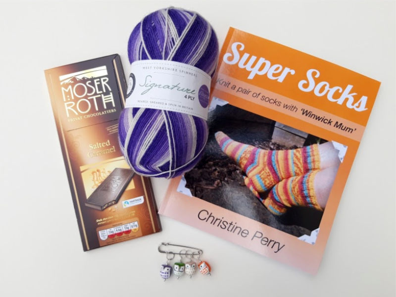 There’s a signed copy of Super Socks so that you can follow the tutorials wherever you are. The information is the same as the blog tutorials but split by needle type rather than by sock section. It’s a good size to prop open whilst you work and there are just as many pictures to help you get to grips with knitting your sock.