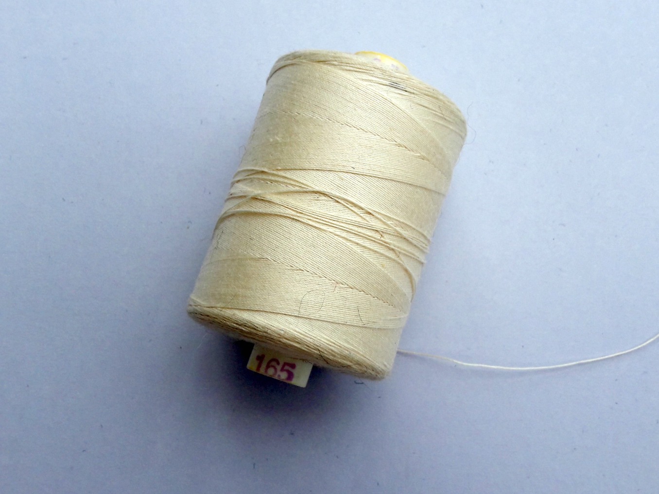 You’ll need a strong thread or thin yarn (some people like to use dental floss but if you choose to do this, don’t pick the waxed minty variety!) – I use quilting cotton because I happen to have a large reel of it – and a wool needle.