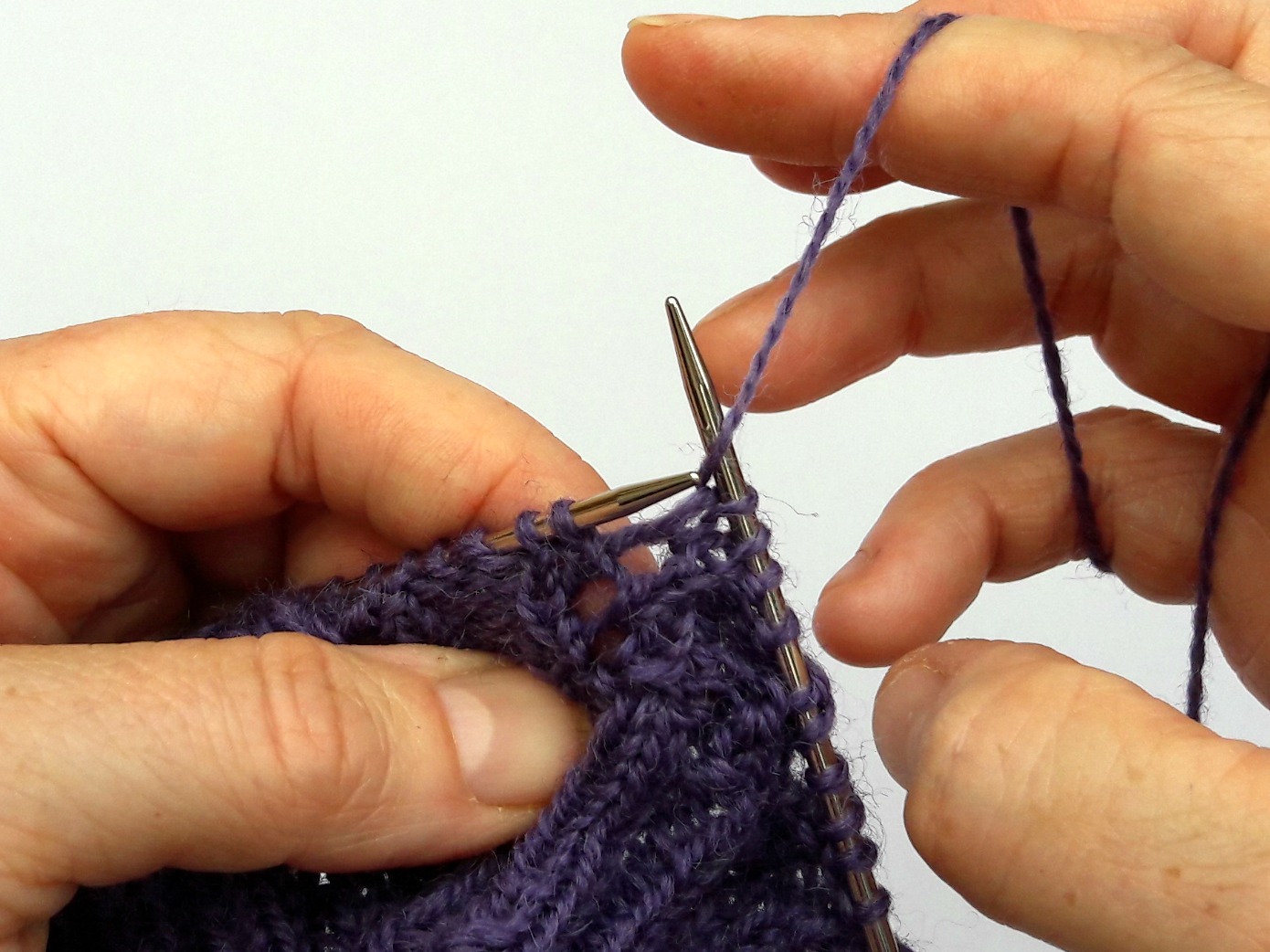 3 Wrap the yarn around the needle in an anti-clockwise direction so that it returns to the back of your work ready to knit the next stitch …