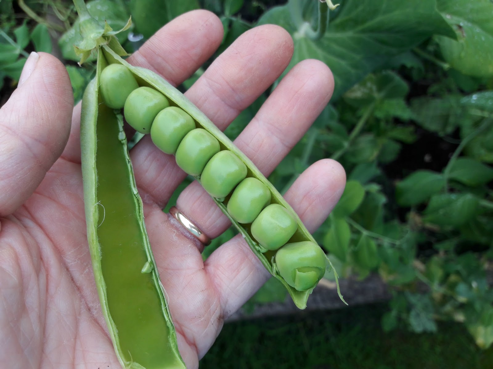 And my absolutely favourite vegetable, peas in a pod. Nothing can beat popping that green case open and seeing those peas all snug together, admiring the way that nature has designed them to grow in perfect form – and then eating them. Even tomatoes warm from the greenhouse only come a close second. I should have been picking the peas and bringing them into the house for dinner, but instead I have found myself standing in the garden eating pod after pod of them and smiling at the memory of getting into trouble for the very same thing when I was little and lived with my parents. We grew most of our own vegetables so for me to snaffle all the peas that were supposed to go into the freezer for the winter was something that was frowned upon, but now there’s no one to tell me off except myself and that’s not going to happen 🙂