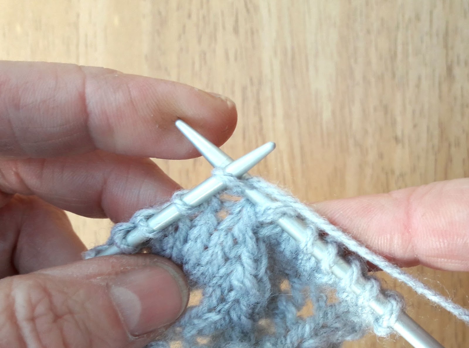 Row 7: K2tog, (K1, yo) twice, K2, cdd, K2, yo, K1, yo, K3.