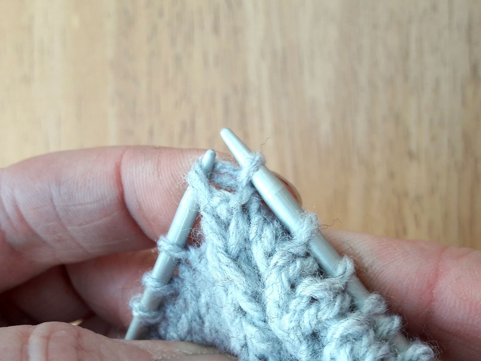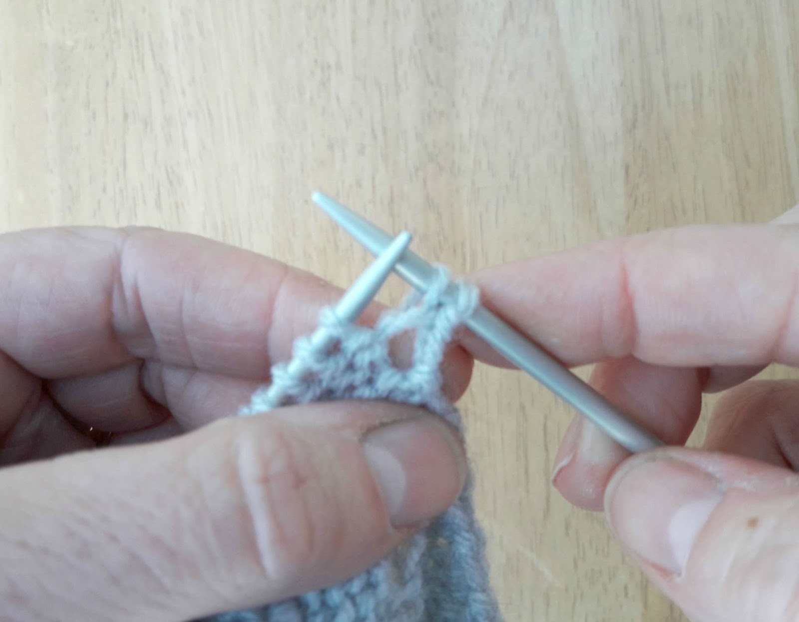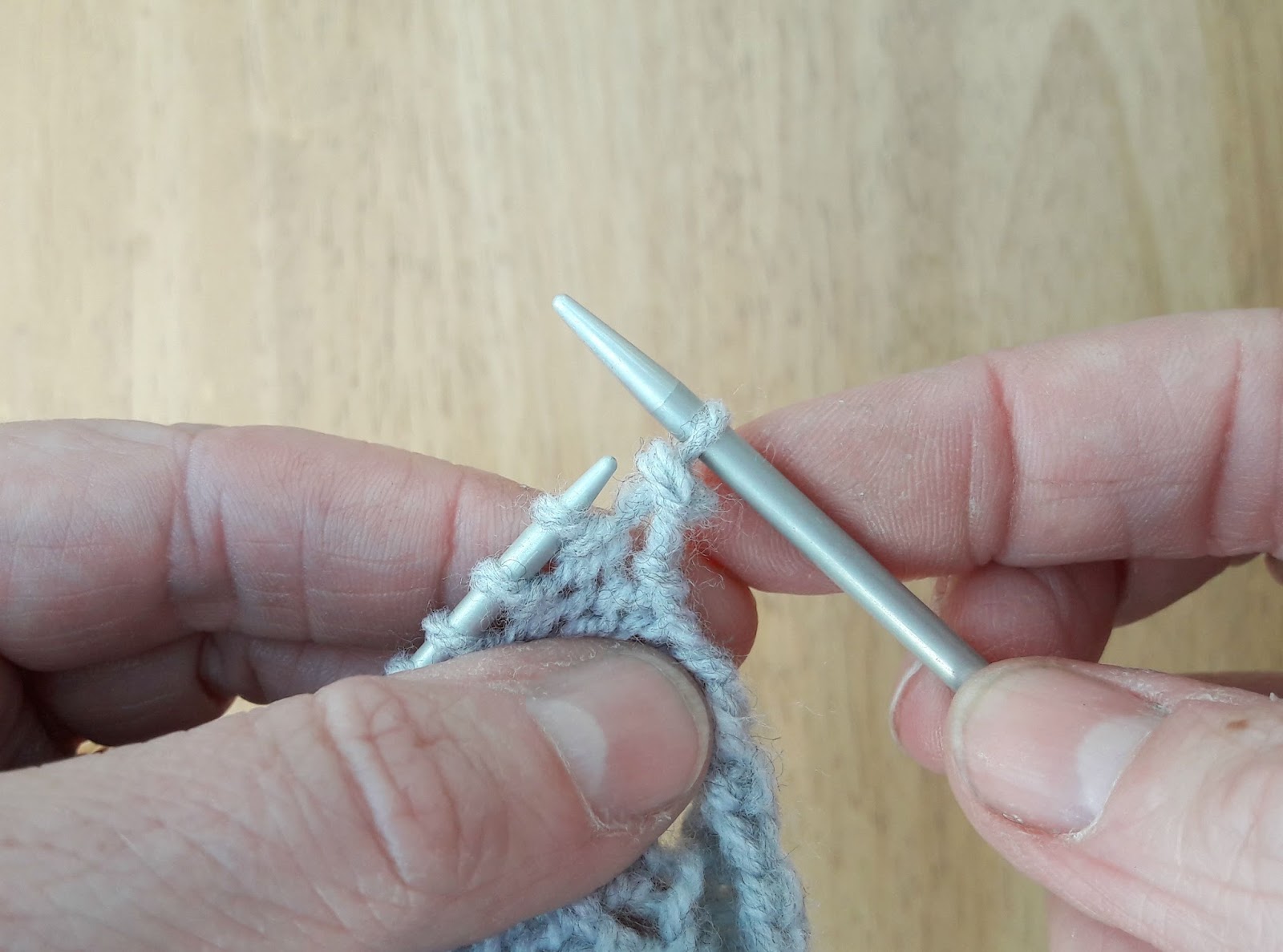 3 Pass the two slipped stitches on the right hand needle over the knitted stitch on the left hand needle.
