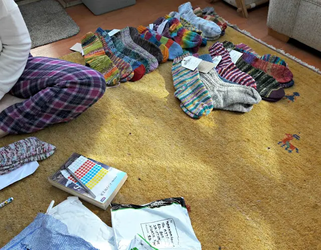 At one point on the Saturday, I had so many pairs of socks that I ran out of space to hang them up. You can just see them piled up on the table on the right of this photo!