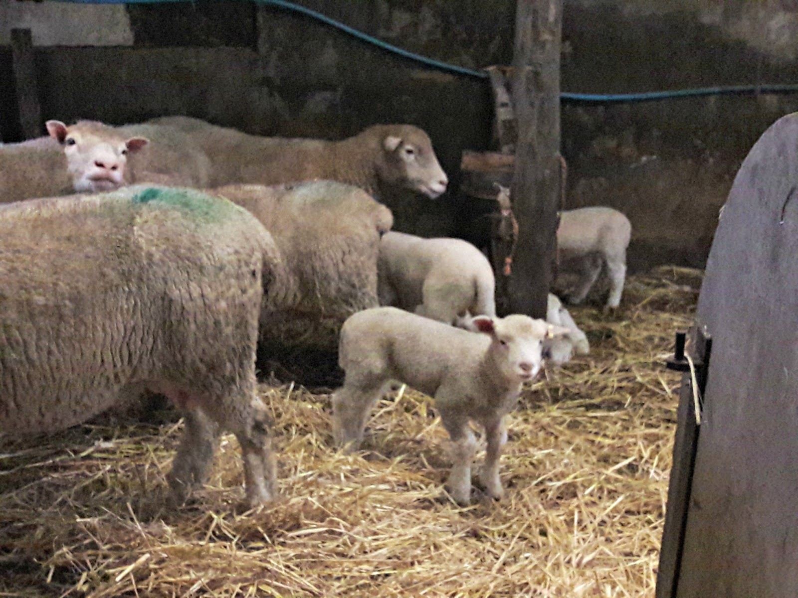 they all had lambs! We weren’t expecting to see any so late in the year, but Lyn the farmer told us that Poll Dorsets can lamb all year round unlike most sheep breeds which only lamb from January to May.