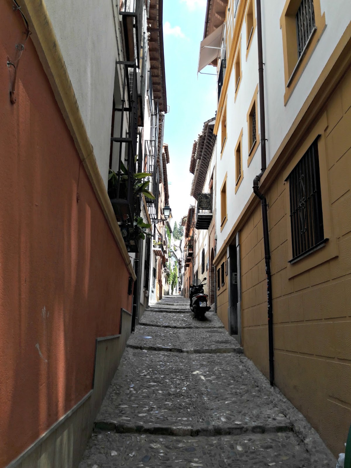 The Albaicin area is a warren of narrow alleyways built into the hillside which were intended to keep the buildings cooler in the heat of the summer. We found them irresistible and walked for miles up and down them, following the twists and turns to see where they would end up. It’s very easy to walk around Granada; we quickly found our bearings and didn’t worry that we would get lost as we followed the tiny streets.