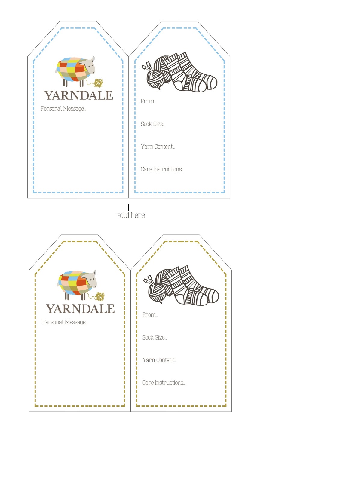 Where can I get those Yarndale sock labels that you mentioned? Right here! They’ve been specially designed just for the Yarndale Sock Line and have space for all the information that you need to add. We’ve got them in three different colours so that you can choose the one you like the best, and feel free to add your own decorations too if you want to. We also have labels without the Yarndale logo if you prefer to use those (these are also ideal for general socky gifts!). Just click on the name of the labels that you want to go to the download page.