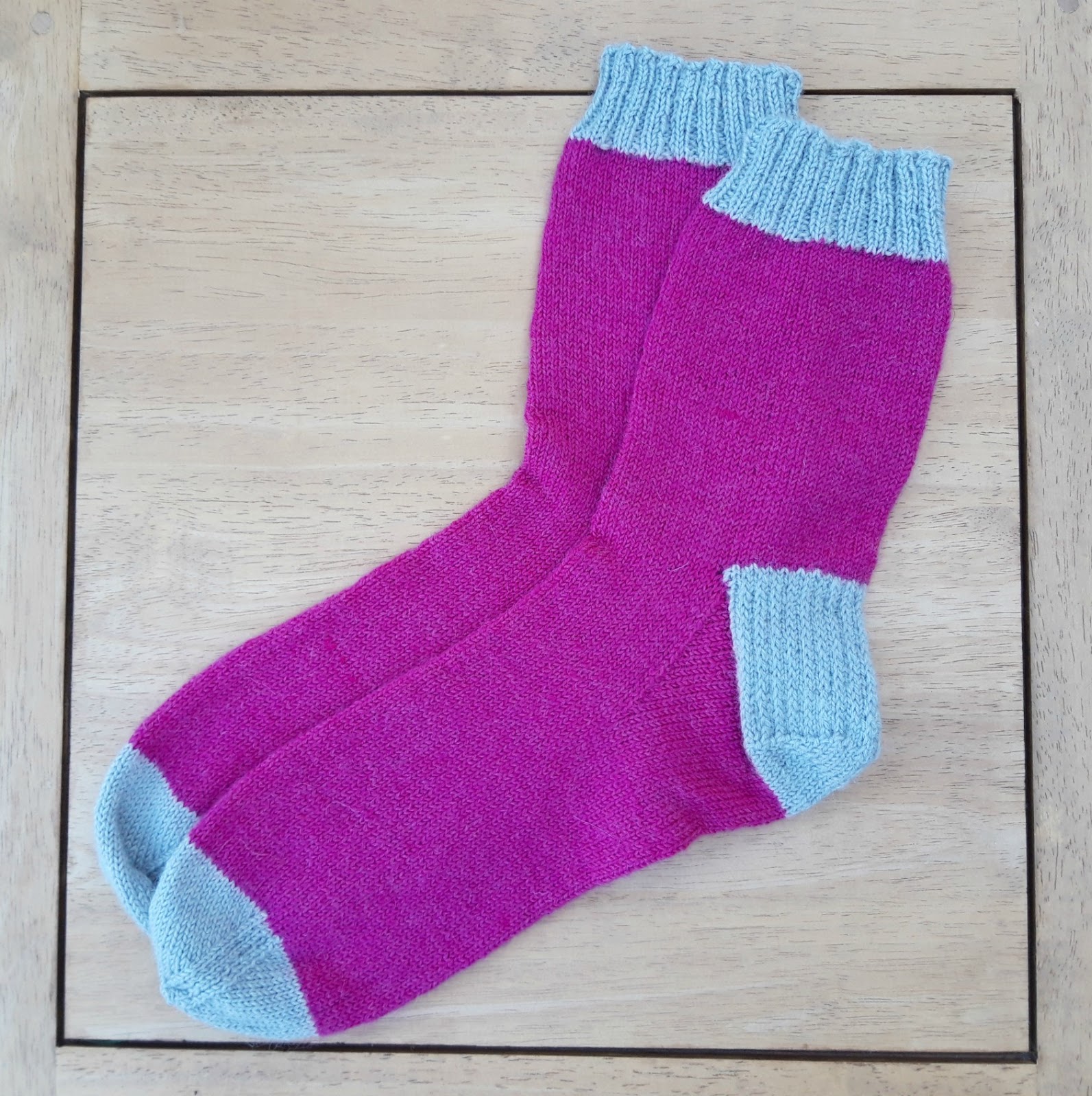In sock news, the pink socks are finished and are ready for their new home. They do look smart, don’t they? I wouldn’t have thought of putting those colours together (mostly because I like stripes!), but they look really good. They’re made in West Yorkshire Spinners Signature 4ply in Sarsparilla with Dusty Miller as the contrast.