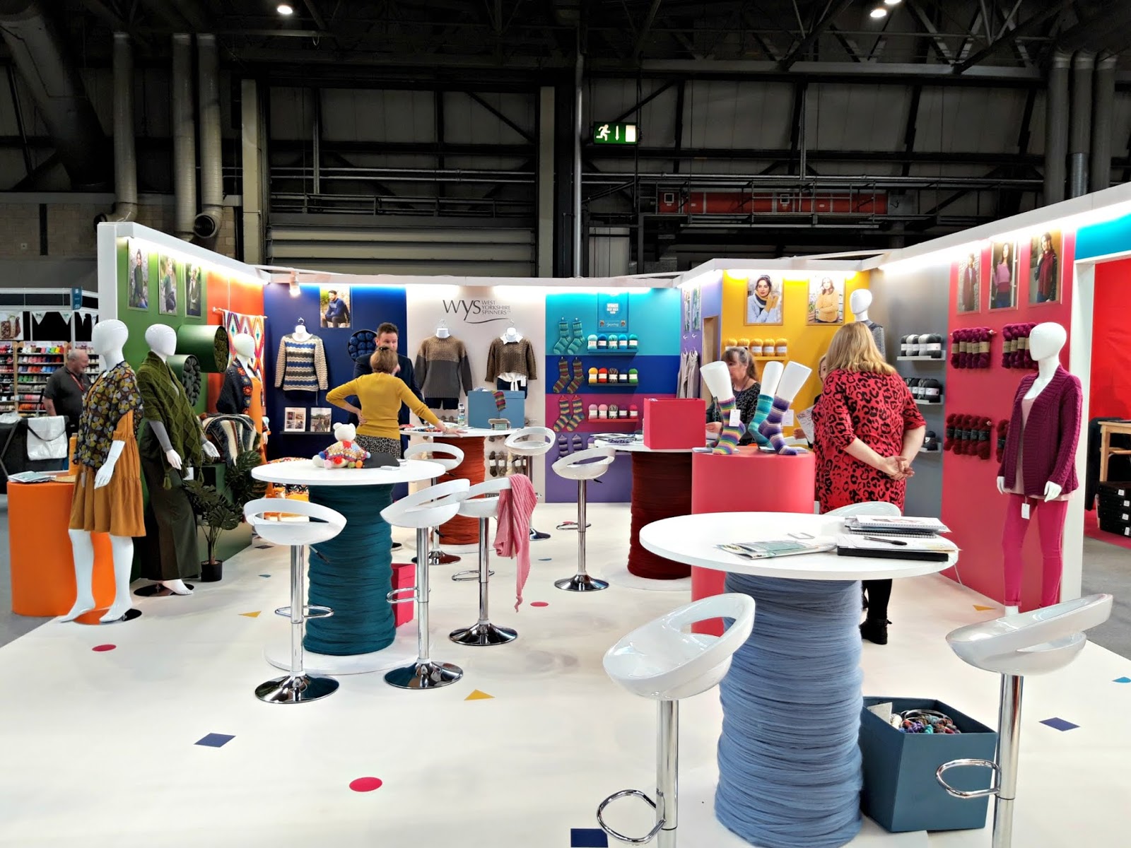 The show doors opened and the hall began to fill up. Because no products are physically bought and sold at trade shows, it’s quite different to somewhere like, say, Yarndale or the Edinburgh Yarn Festival in that it’s all much calmer. There’s no rushing to get to a particular stand in case they sell out of something that you want, no elbowing anybody out of the way and the stands are those of companies like WYS rather than smaller independent exhibitors who sell directly to their customers rather than through a stockist.