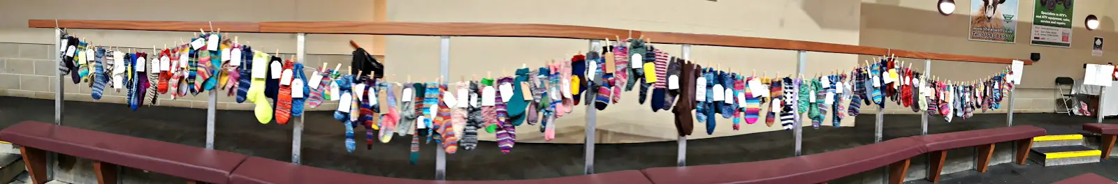 So far, over 780 pairs of socks have been displayed and then gifted on the Yarndale Sock Lines at the last four Yarndale festivals. That’s a lot of socks! It has been truly humbling to see the generosity in terms of time, yarn and skills that have been gifted, and so lovely to know that so many people have wanted to join in and have their socks displayed.