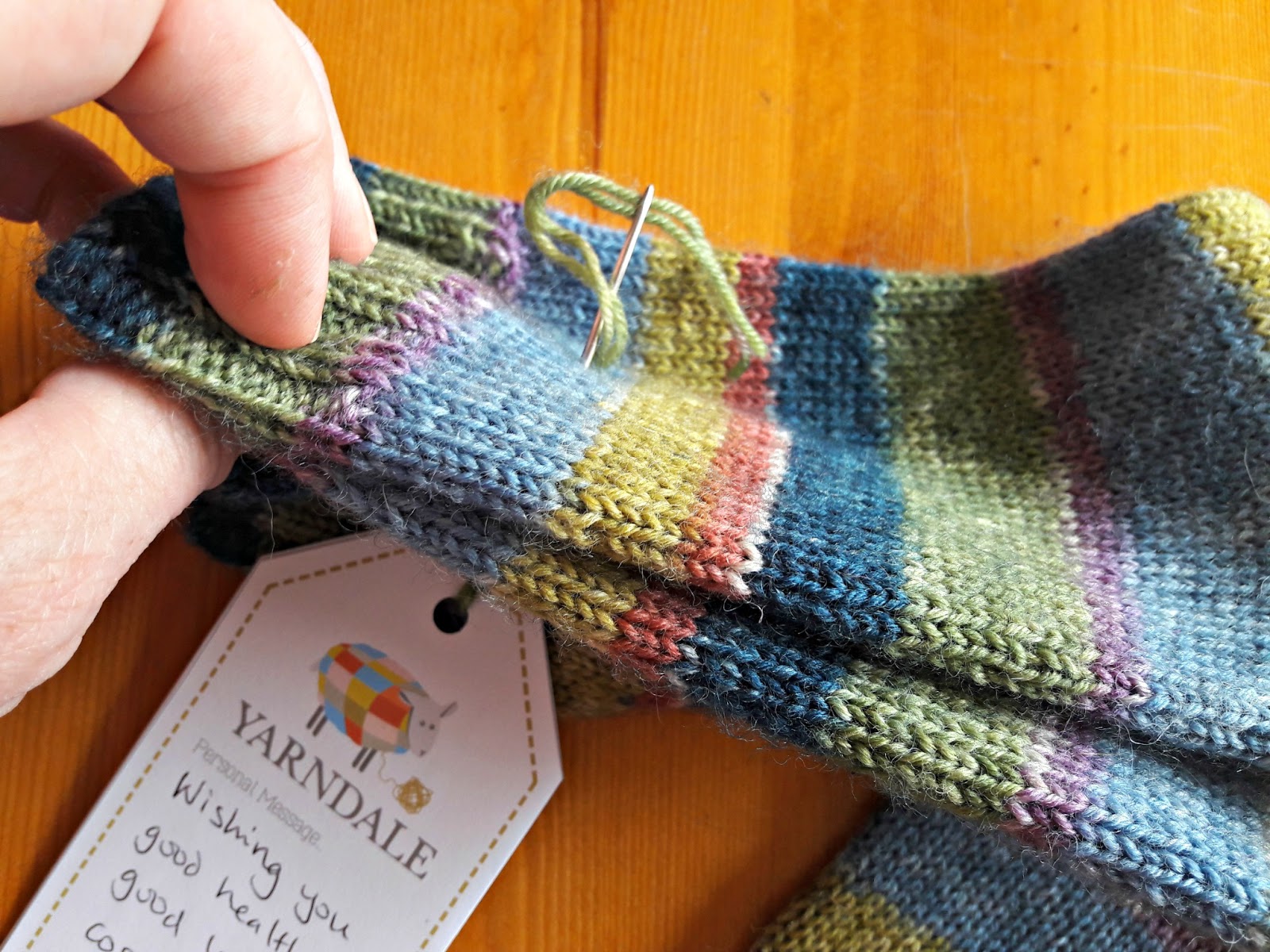 What to do if you live abroad. I am well aware that Yarndale is a UK-based festival and that to take part might involve a hefty expense with postage. So, instead of sending me your socks from around the world – although you are very welcome to do so if you’d like to – you might prefer to gift your socks locally. All of the Yarndale Sock Line socks are sent to UK organisations and you might know of somewhere near you where they would be equally appreciated. So that you can still join in with the Yarndale Sock Line, just follow the steps above and take a picture of your finished socks, complete with the label so we know who you are, and email it to me. I’ll print out your picture and hang that on the Sock Line alongside the other pairs so if you can let me know whereabouts in the world you are and where you will be gifting your socks, I’ll add that information so that we can see socks being gifted all over the world!