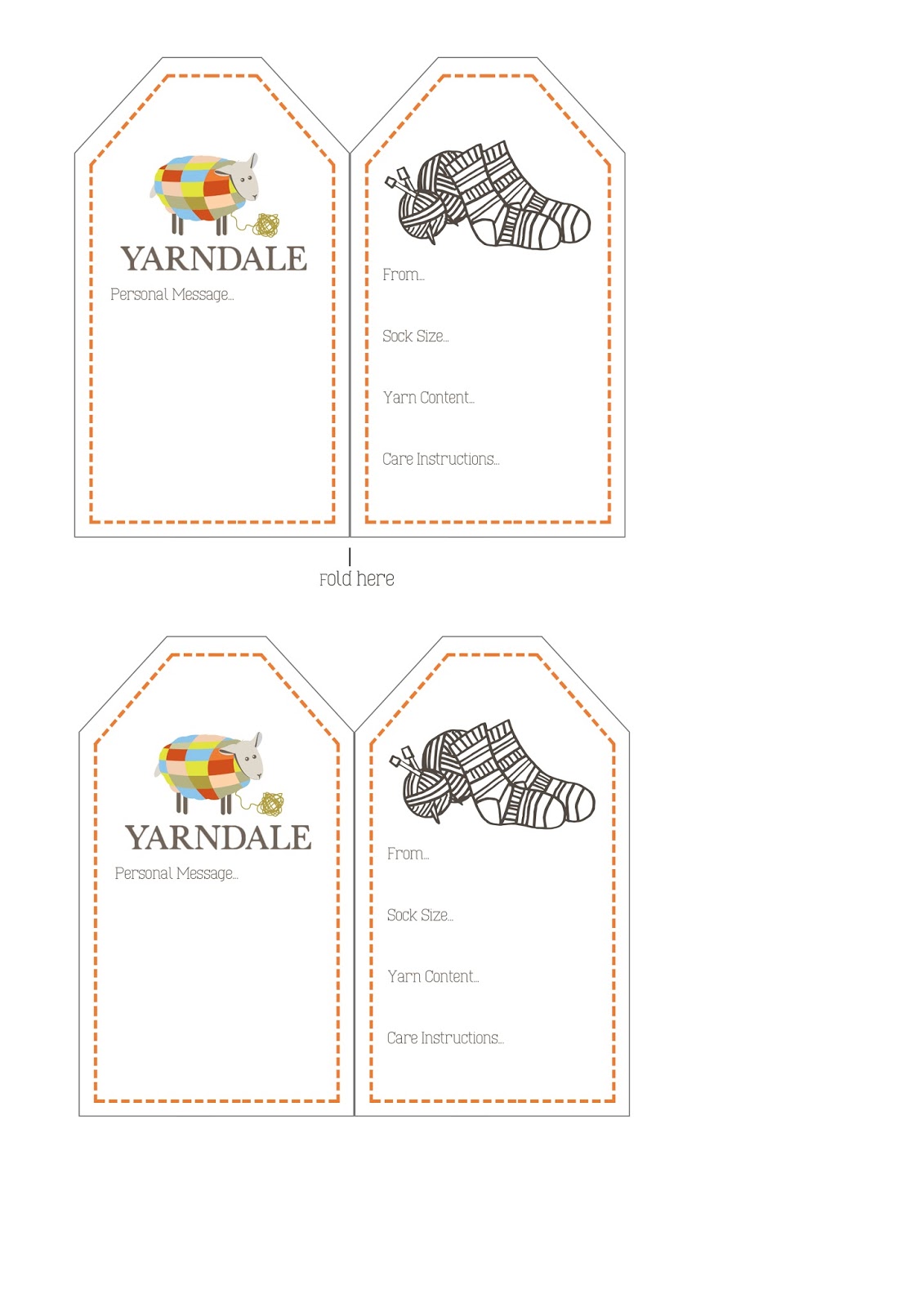 Where can I get those Yarndale sock labels that you mentioned? Right here! They’ve been specially designed just for the Yarndale Sock Line and have space for all the information that you need to add. We’ve got them in three different colours so that you can choose the one you like the best, and feel free to add your own decorations too if you want to. We also have labels without the Yarndale logo if you prefer to use those (these are also ideal for general socky gifts!).