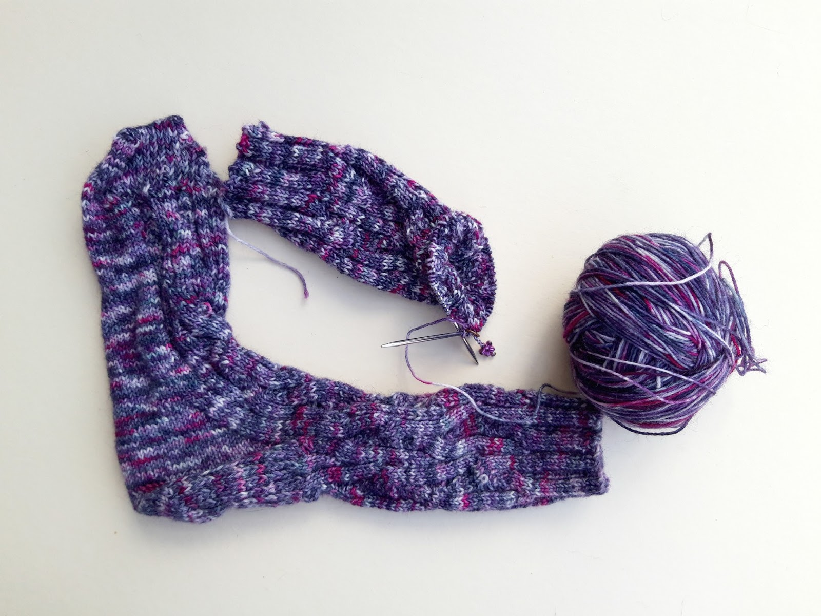6 ply boot socks – this one is quite ridiculous. Look at that, I’m so close to finishing! I have no idea what I was doing with that toe and why it is hanging off DPNs, but I’m sure it wouldn’t take long to fix it so that I could actually wear the socks.