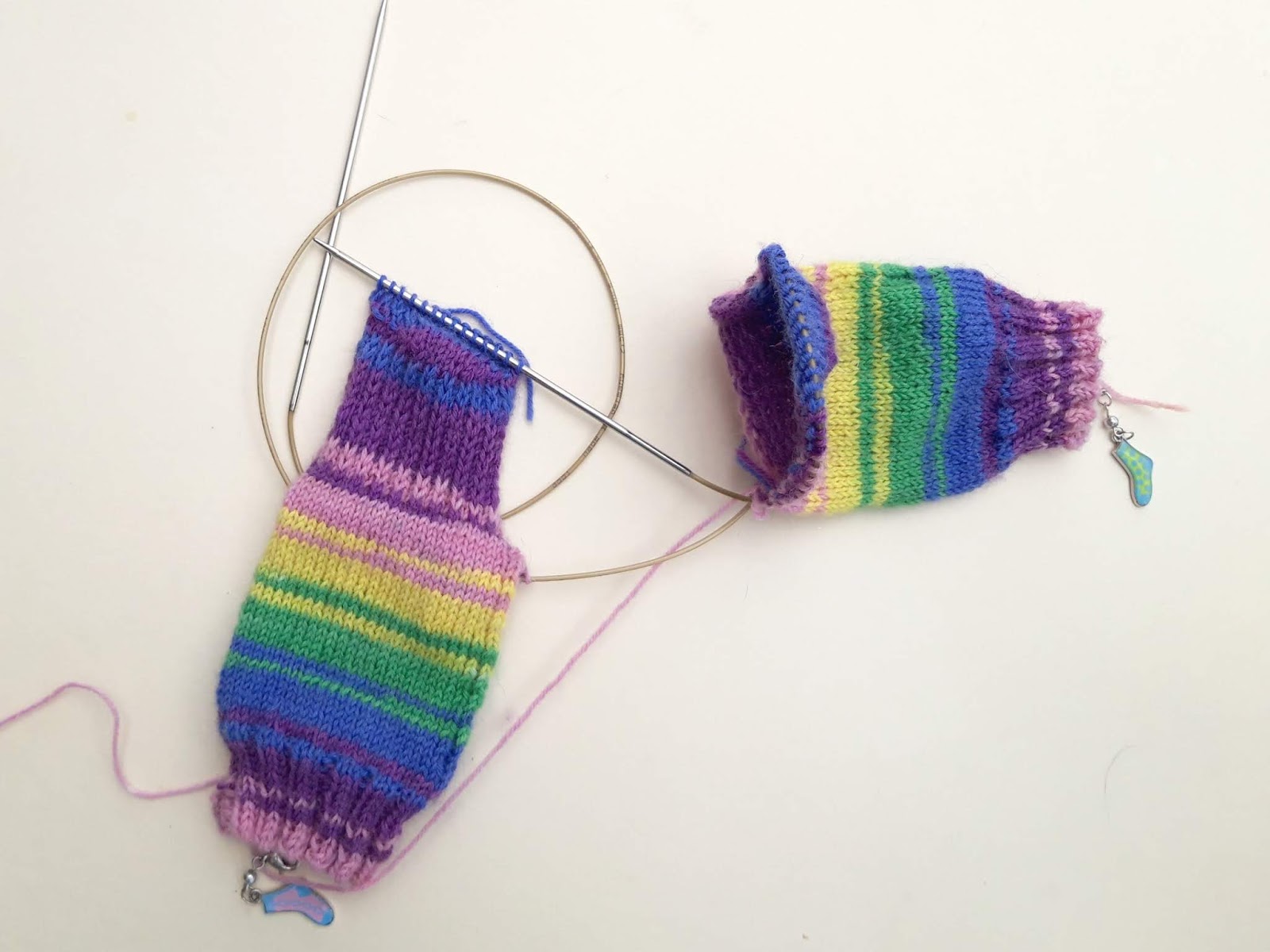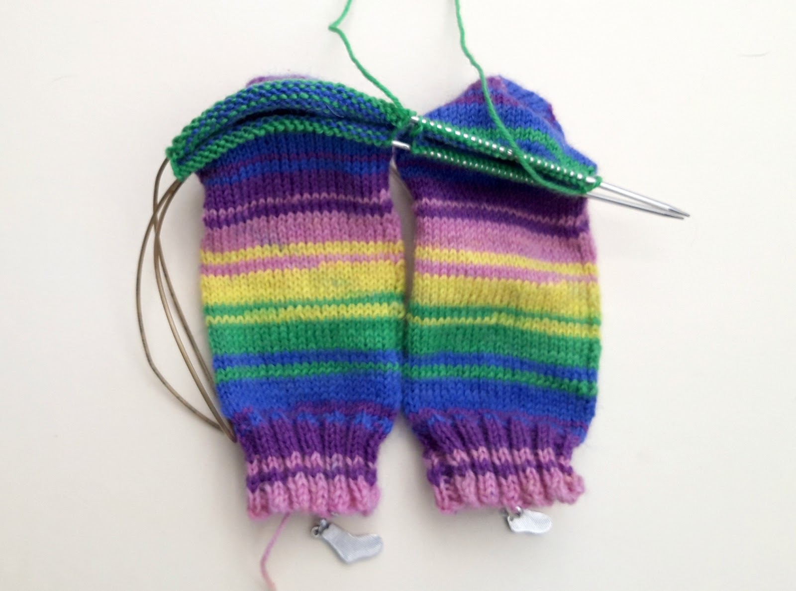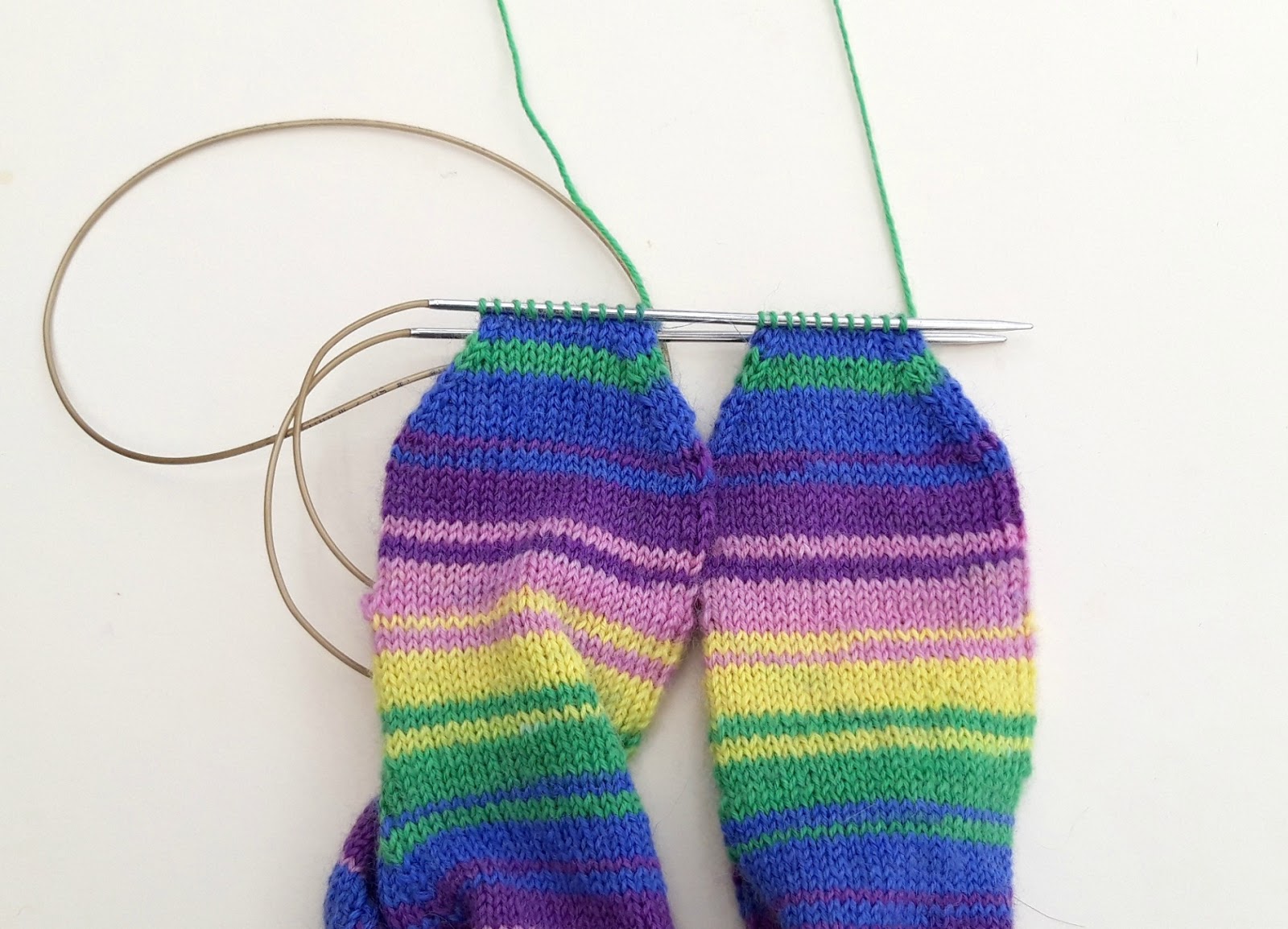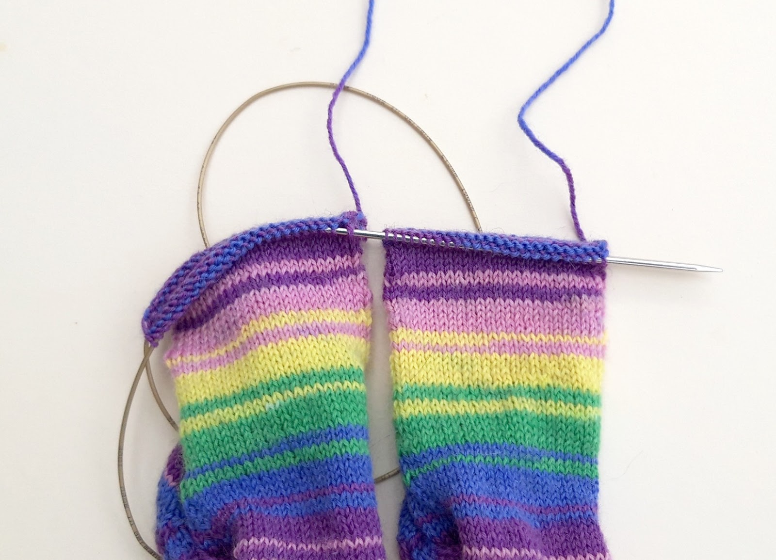 And look! There are your two socks both on one long circular needle.