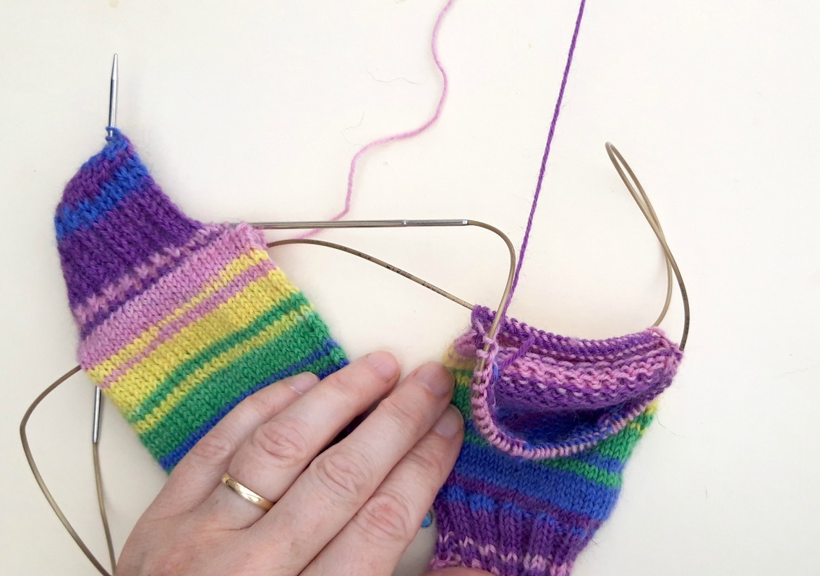 Such a good tutorial! I like how you explained how to match the colours in the yarns before starting, very helpful. I knit my socks on dpns but am thinking I should give TAAT a try! Thank you!