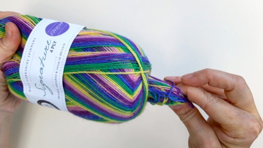 This is a simple way to wind a centre-pull ball if you don’t have a ball winder or nostepinne to use. This will work whether you’re left or right-handed, although I’m showing you how to do it from my right-handed perspective – just reverse the instructions if you need to! This is also shown on the video so if you want to watch how to do it, you’ll find it there.