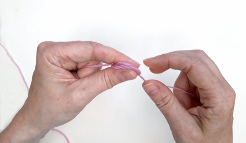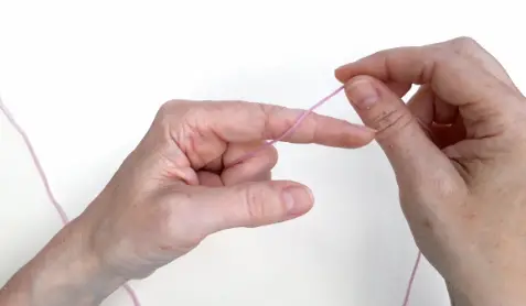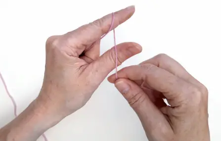 1 Lay the end of the yarn across your left (or right) palm.