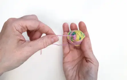 12 Continue to wrap the yarn around your thumb (this will make sure that you don’t accidentally wrap over where the yarn is coming from in the centre, making it difficult to pull)