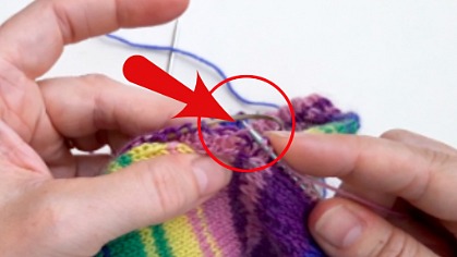 OK, you’re back at the start of your round and ready to work across the top of the foot stitches.