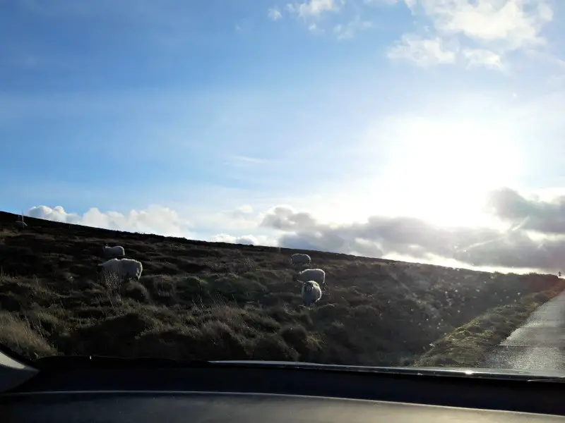 By the time I was returning home, the sun was out and the grey sky was blue. There are sheep loose on the moors at this particular point so you have to drive very carefully in case they are in the road.