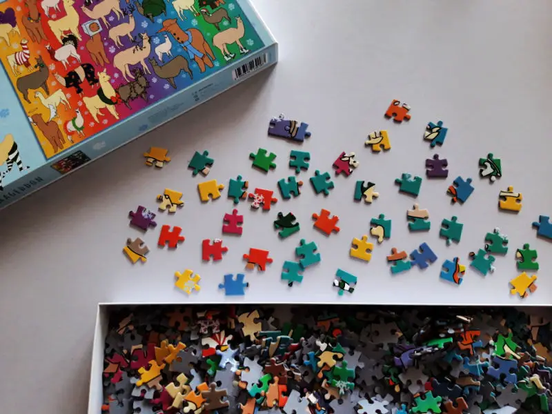 It’s called Christmas Llamageddon and has lots of pictures of llamas dressed up as Christmas sprouts, snowmen, in pyjamas, with angel wings … I’d forgotten that you can spend as long looking at the picture details as doing the jigsaw itself!
