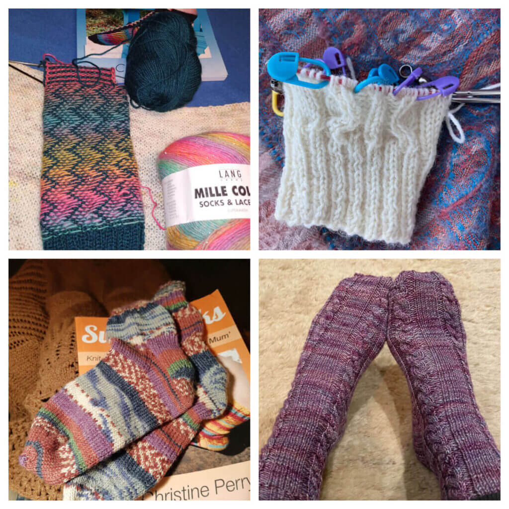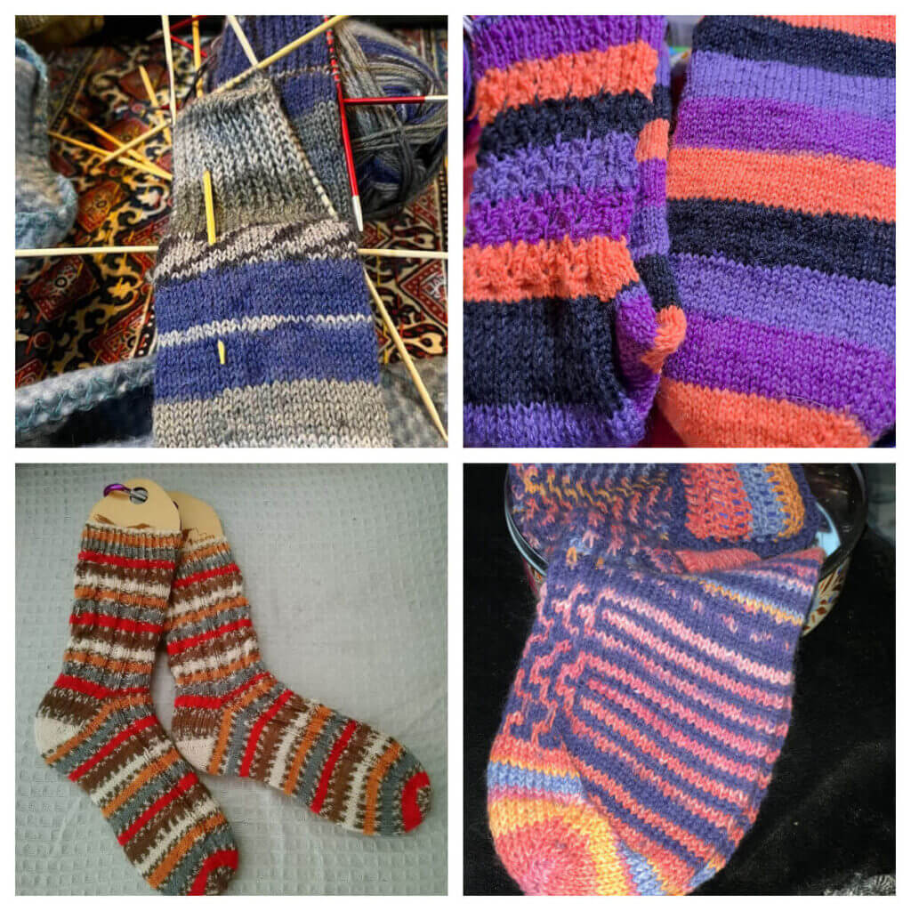 Top right: Jan (email) is knitting a pair of Sanctuary Socks;