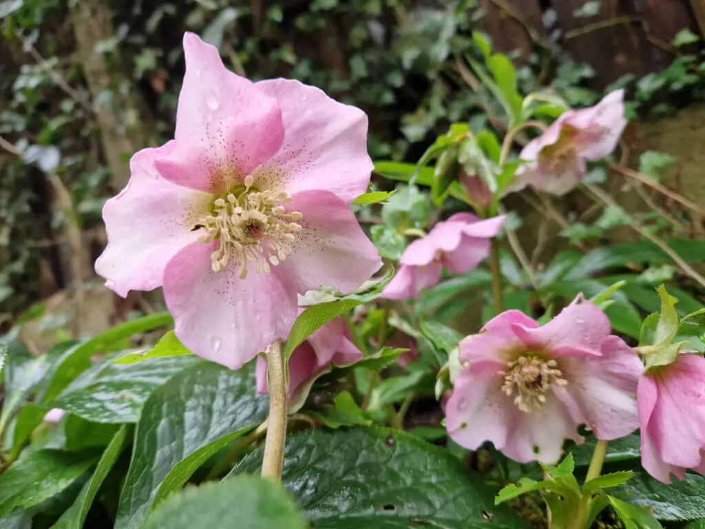 Our garden is most definitely a spring garden, and there are most definitely signs that spring is on the way! Some of my favourite spring flowers are the Hellebores which start appearing from late January; I’ve got a few different varieties – in these photos are (from the top) Helleborus argutifolius, Helleborus foetidus, Helleborus niger and Helleborus orientalis. Every year, the Helleborus orientalis (Oriental hellebore) flowers are slightly different shades of pink – they started off as deep purple when I planted them, but as the bees start to wake up and visit the flowers, they have gradually faded as the bees travel from the white Helleborus niger (Christmas rose) flowers to the darker pink flowers – the same has happened with the foxgloves in the garden and now I have all kinds of colours. We’re a while off seeing the foxgloves yet, but I wonder what we’ll get this year?!