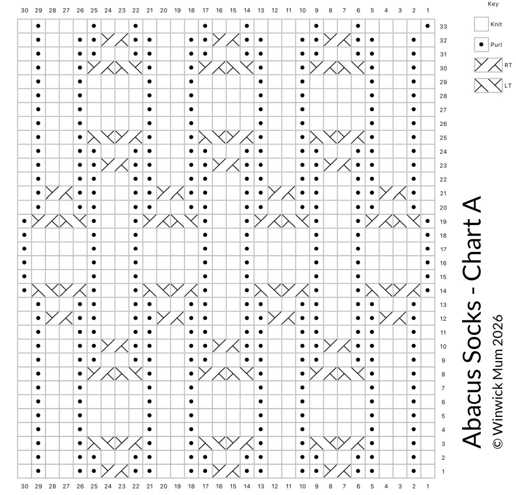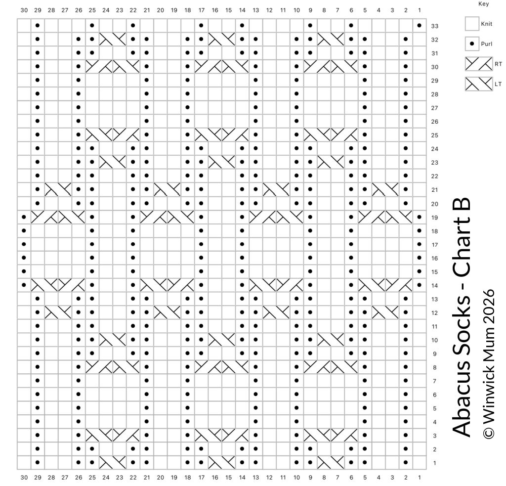 ** 27.01.26 – This pattern has been amended to alter round 31 in both the written instructions and charts. If you have version 01 of the pattern, please check the Errata for the update. The current version of the PDF is Abacus Socks 02 **