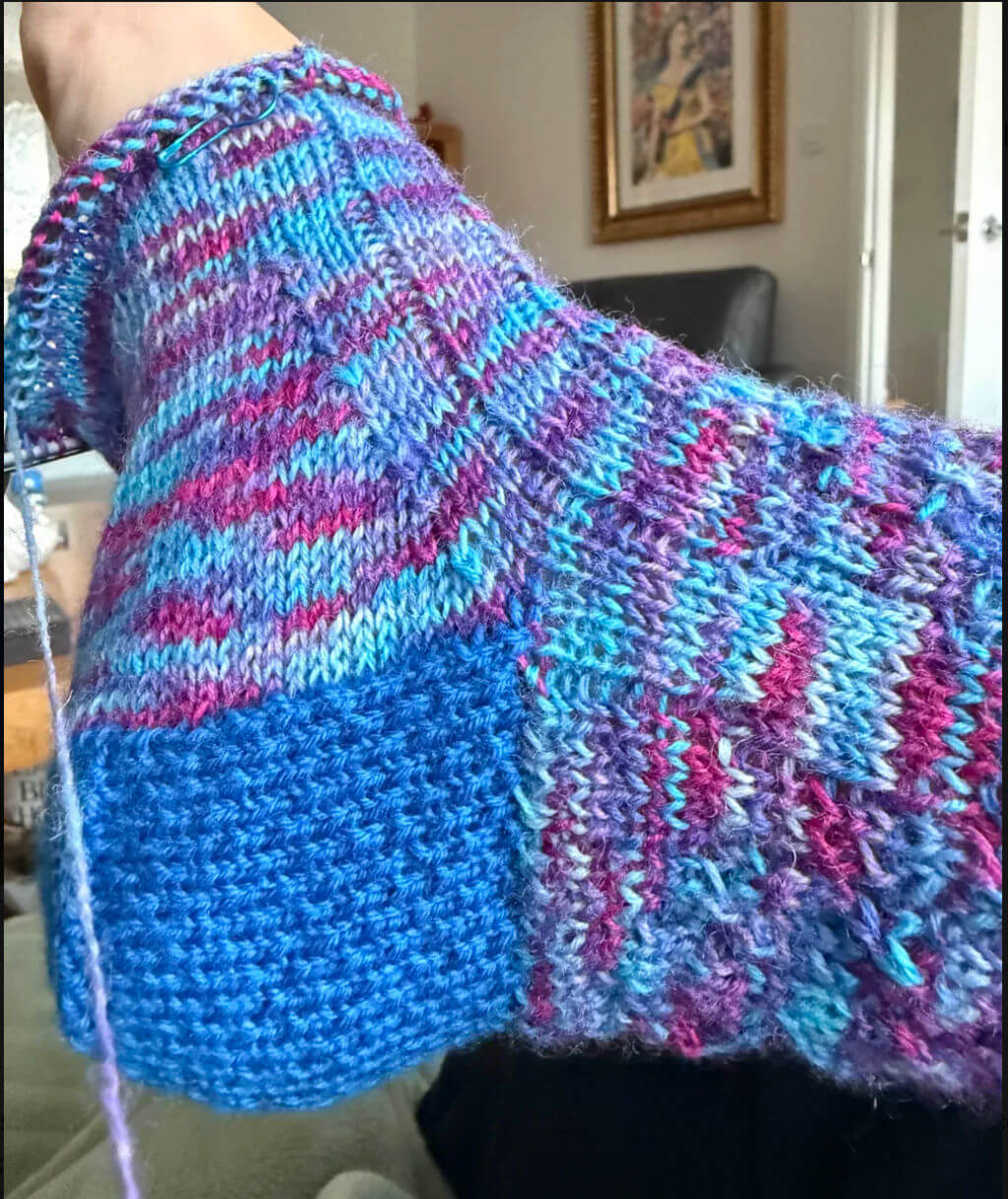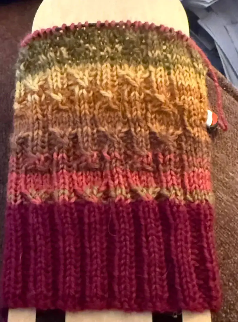 Angela is one of my lovely group of test knitters and she chose Autumn Leaves for her main colour yarn. It’s worked really well!