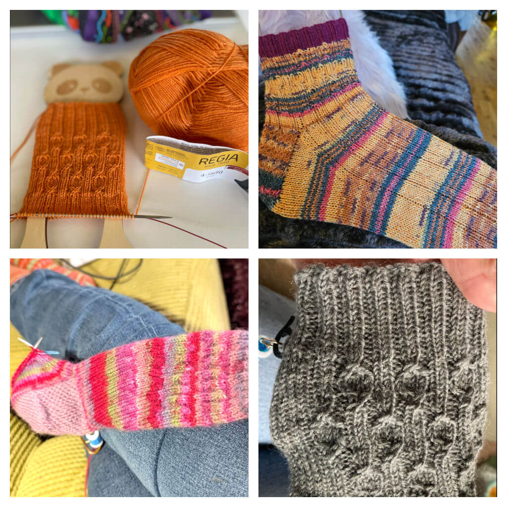 Allison has got her feet up, her hand knit socks on and there’s another pair started on her needles. That looks like the perfect setup to me!