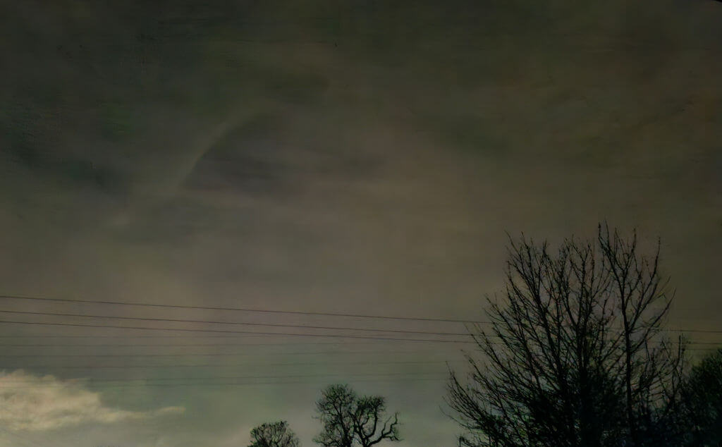 We’re a bit too close to the M6 and M62 motorways here in Winwick to get a really good view of them and it was a bit cloudy on Monday night too, but this is what my camera picked up. I couldn’t see them without the camera but if you look at the photo, you can just see a line of green near the bottom of the photo and a line of pink slightly higher up.