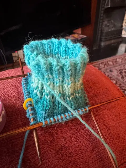 Another Winwick Mum yarn on the go here … this is Seascape and Janice is knitting a Basic 4ply Sock. She’s new to sock knitting and is off to a great start!