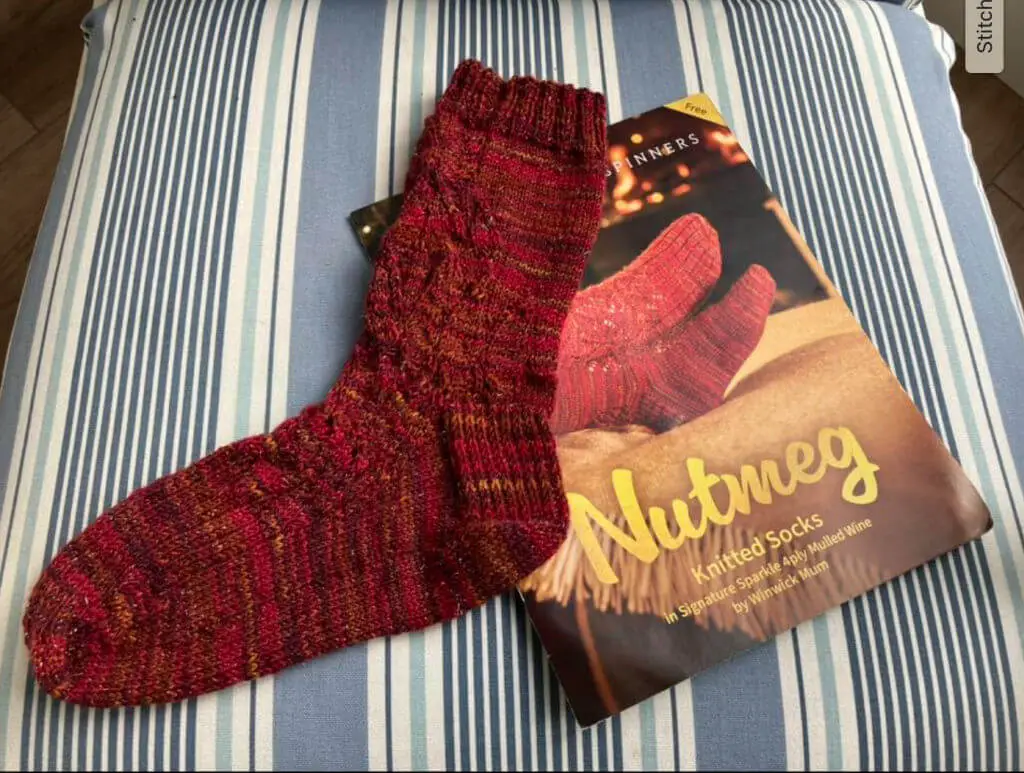 Finally for today, we’ve got another first – this is Tracy’s first attempt at a lace pattern and she’s gone straight in with Nutmeg, the sock I designed for the West Yorkshire Spinners Christmas 2025 yarn. I’ve always said that if a pattern calls to you, just have a go and Tracy’s done exactly that – and with a fantastic result!