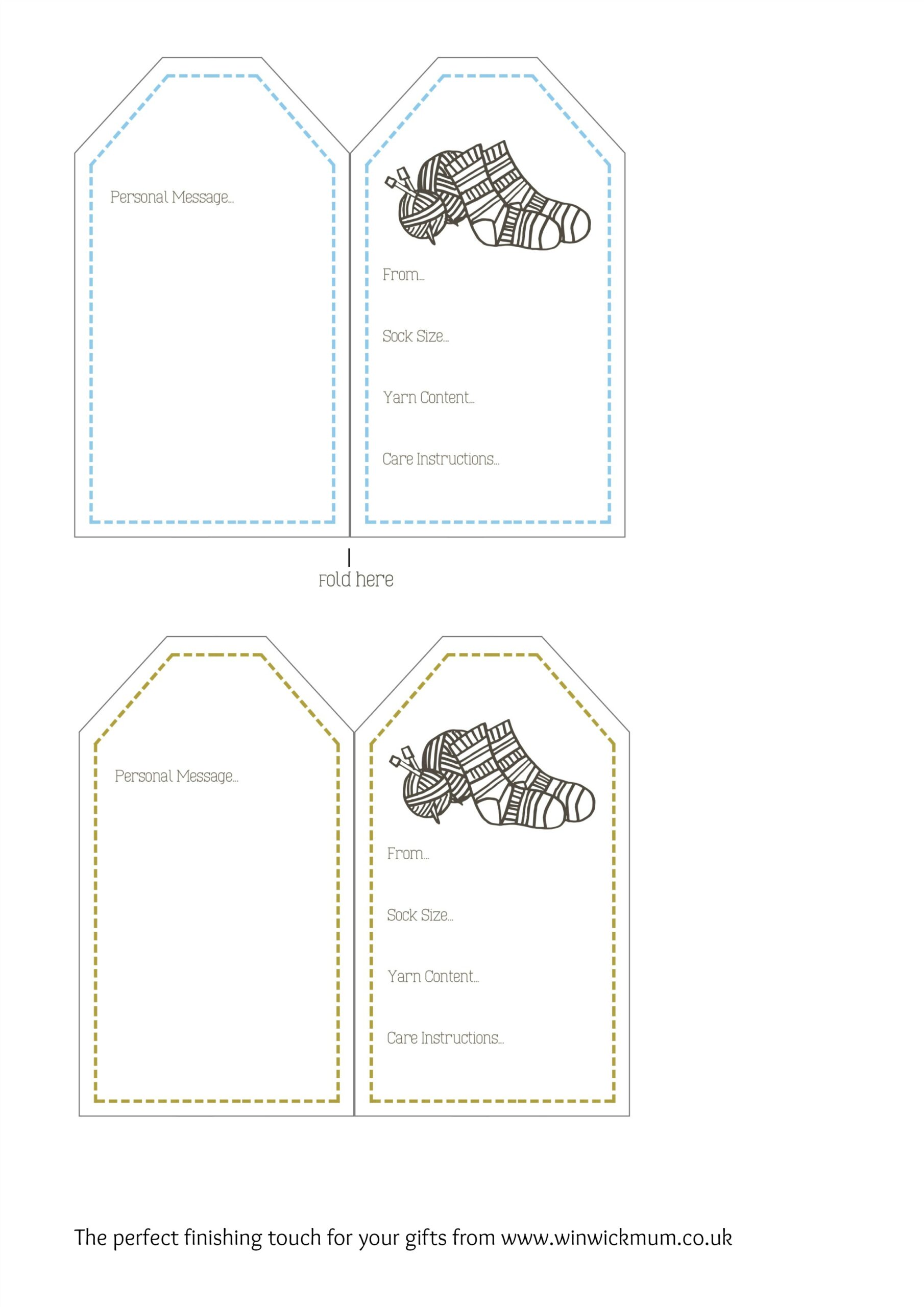 If you’re giving your socks as a gift, it’s always nice to be able to finish them off with a label! These luggage tag-style labels have room for the yarn details on the front and a personal message on the back.