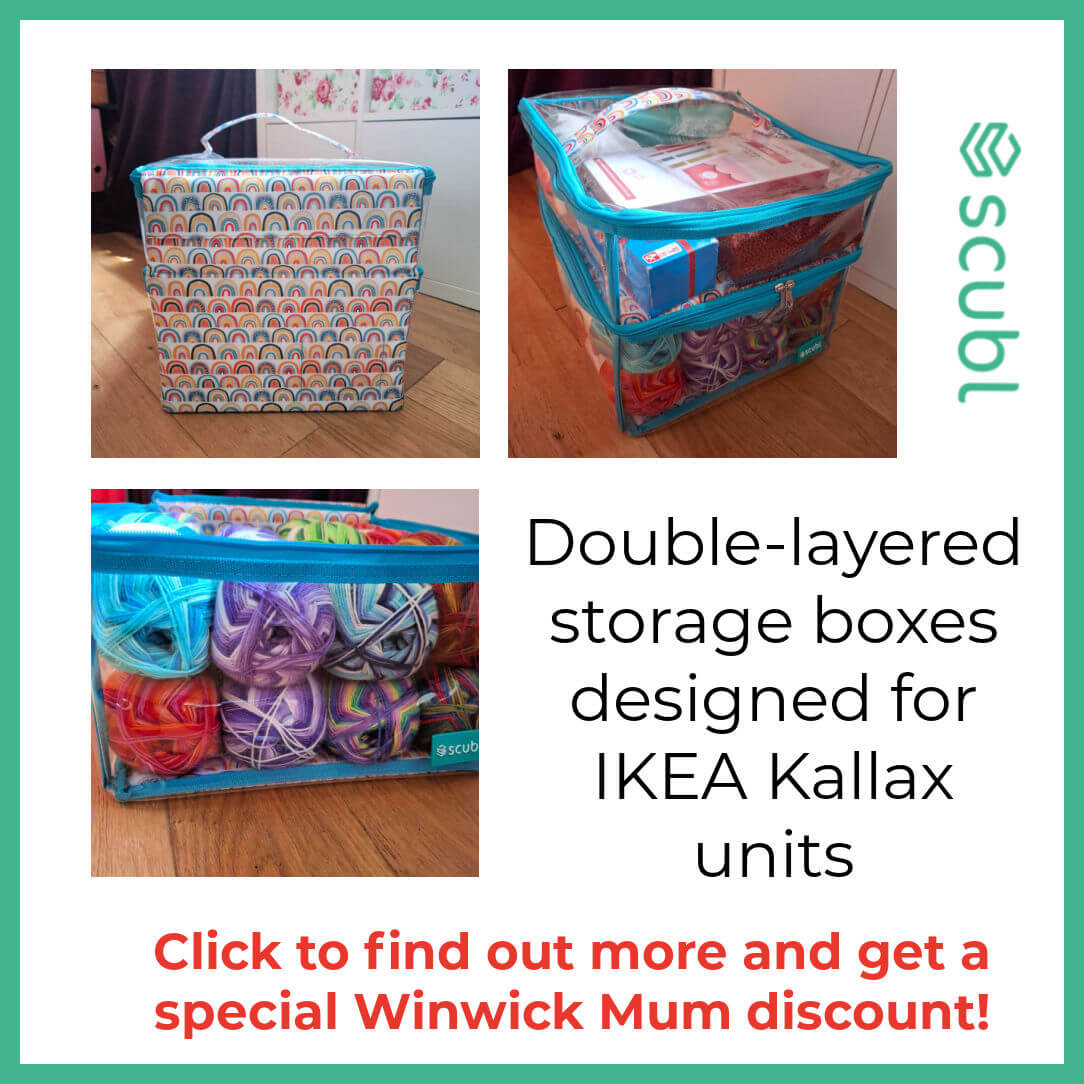 I think these are brilliant! They’re storage boxes designed especially for the IKEA Kallax units and with a zipped double layer, they are perfect for storing all kinds of knitting and crafting stash and accessories.