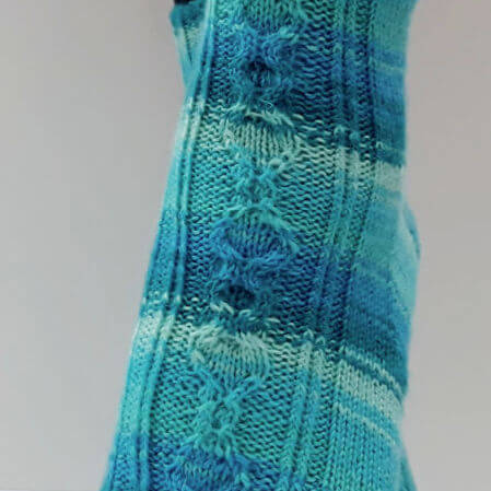 The cable panel of these socks reminds me of the intricate wooden Welsh love spoons that were traditionally carved as a gesture of love and to showcase the skills of the carver. Whether knitted as a gift for yourself or another, the love that is knitted into every stitch will be apparent to everyone who sees them!