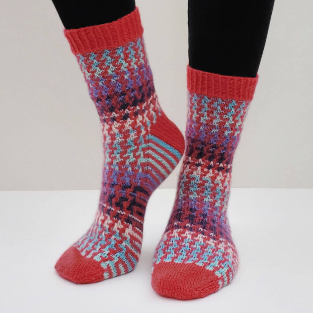 You can read more about mosaic knitting and find technique help in my Easy Mosaic Socks pattern and tutorial.