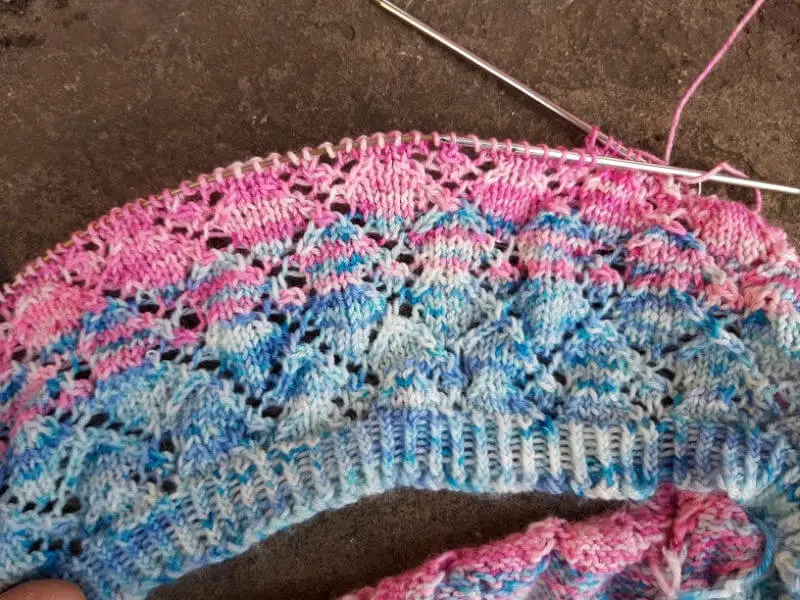 The lace pattern is repeated to make the cowl whatever length you prefer.